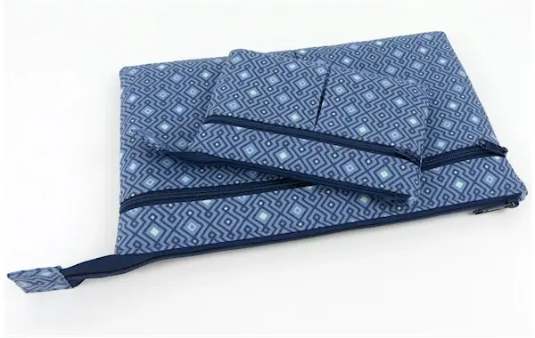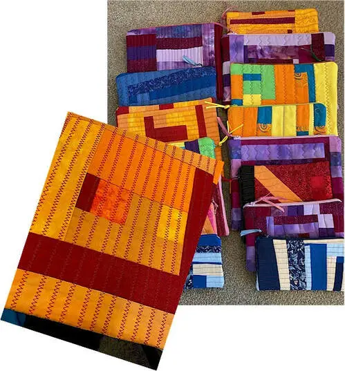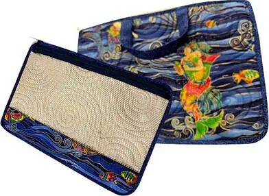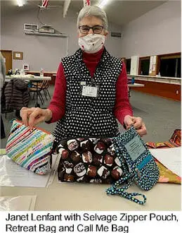 Janet will make up kits (some with fabric and zippers and some with just the interfacings) and bring her press to make it easy to apply interfacing and fusible fleece. Janet will walk you through the process and show a cool way to make the zipper ends. If you cut your own fabrics, cut the fabric for the 2 zipper ends at 2 ½” x 4” each.