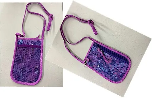 Keep everything handy in this lightweight 7 1/4″H x 4 3/4″W bag. Vinyl, mesh and a zippered fabric pocket will hold a name tag or ID card, phone and credit cards or cash. A fabric strap, whose length is determined when binding the edges, can be customized to wear around the neck, over the shoulder or crossbody.