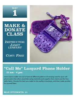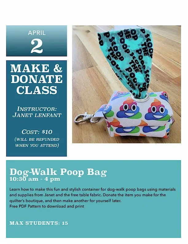 The class is complimentary, but you can make a donation to Community quilts if you like.