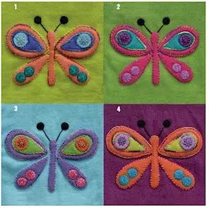 We will use the Sue Spargo pre-cut butterfly kits to learn how to applique the wool pieces to the background. Then we will embellish the butterfly with embroidery stitches using different weights of pearl cotton.