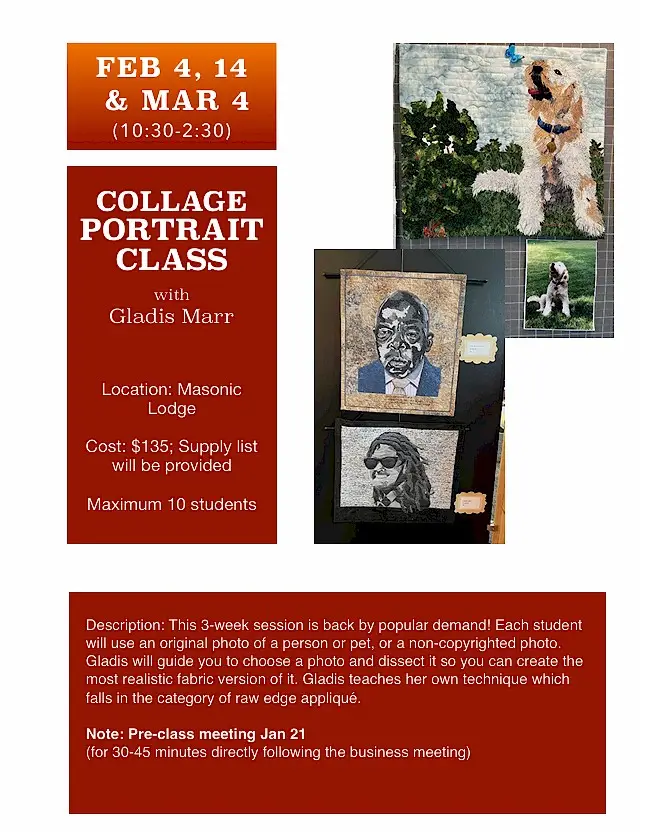 • February 4, 11, March 4 – Collage Portraits with Gladis Marr (sign-ups are open)