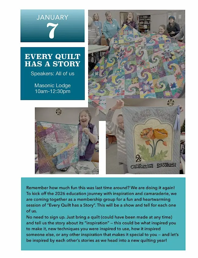 • January 7 – Every Quilt Has a Story, Theme: Inspiration
