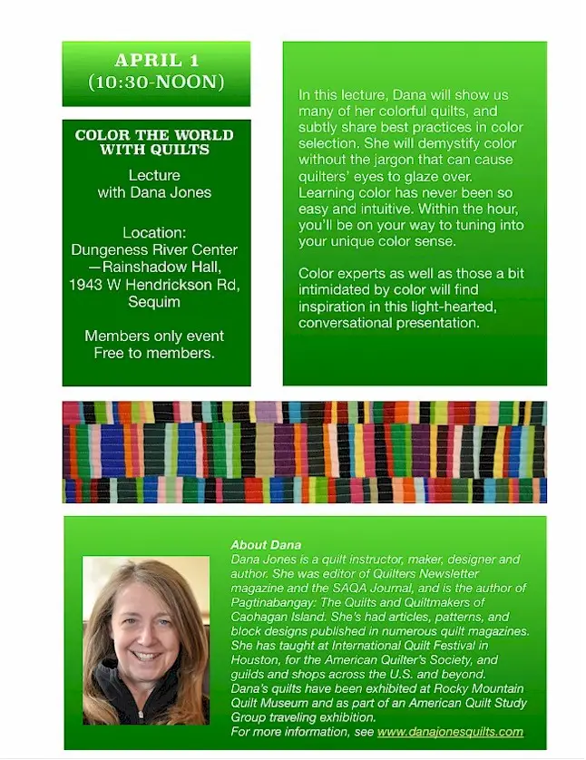 • April 1 – Lecture: Color the World with Quilts with Dana Jones*